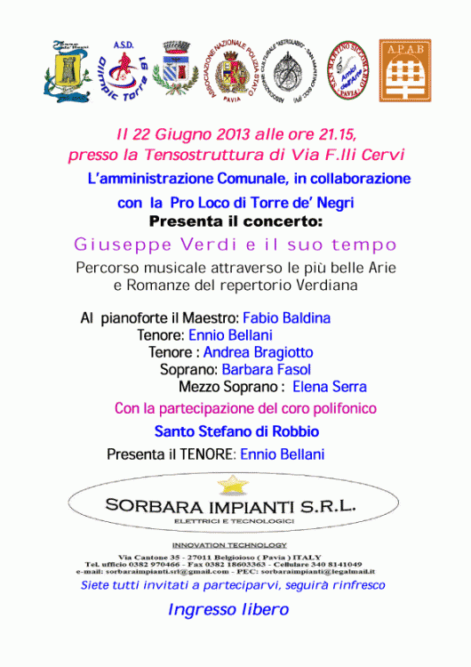 Concerto lirico con la straordinaria partecipazione della corale “S. Stefano” di Robbio (PV).