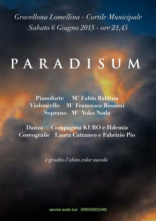 Concerto “Paradisum” – Gravellona Lomellina (PV) Posted on 25 Maggio, 20153 Luglio, 2015 by ruggero Sabato, 06 giugno 2015 – Ore 21.45 Cortile Municipale – Gravellona Lomellina (PV)